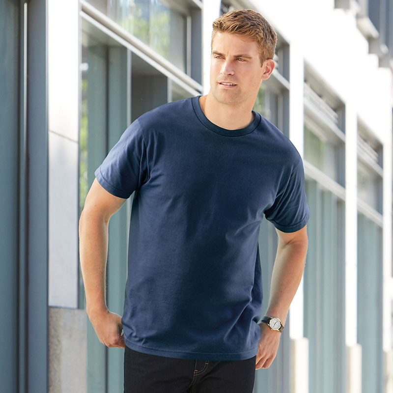 Classic fit. Seamless non-topstitched 2.22cm collar. Taped neck and shoulders. 2.22 cm double needle sleeve and bottom hems. Quarter-turned to eliminate centre crease. Tear-away label. Oeko-Tex Standard 100 certified. Washing Instructions Wash at 40 degrees. Non-chlorine bleach when needed. Tumble drying normal. Do not iron if decorated. Do not dry clean.
