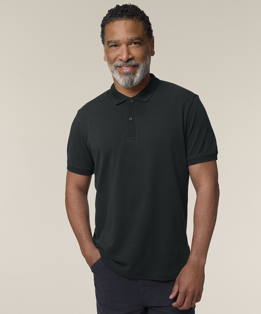 100% Organic cotton piqué, pre-shrunk. The Stanley Coaster mid-light polo for men. Fitted. Set-in sleeve. Flat knit rib on collar and sleeve hem. Inside heavy single Jersey back neck tape. Front inserted placket with two buttons in matching body colour. Slit and bartack finish at side seam hem. Single-needle topstitch at shoulder seams. Bottom hem with narrow double-needle topstitch.