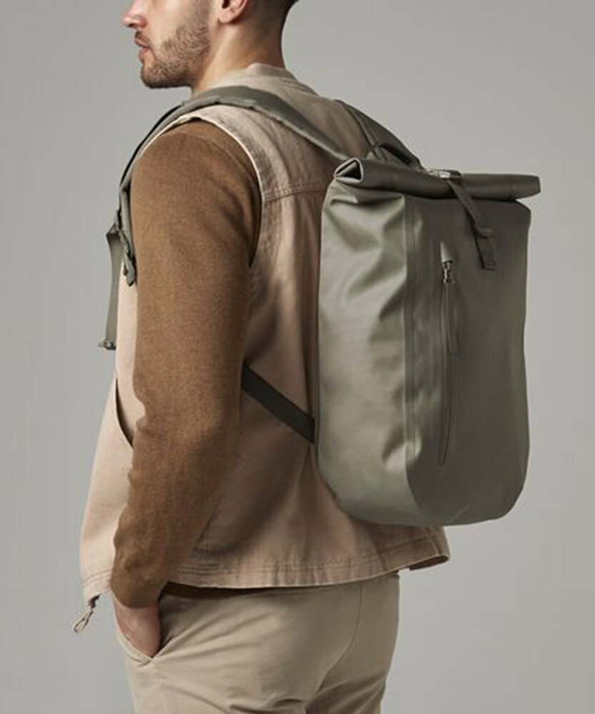 Waterproof fabric. Waterproof main compartment. Zipped front pocket. Roll-top closure. TearAway label for ease of rebranding. Contains recycled polyester.
